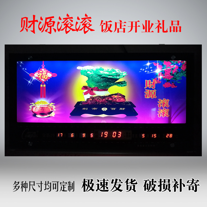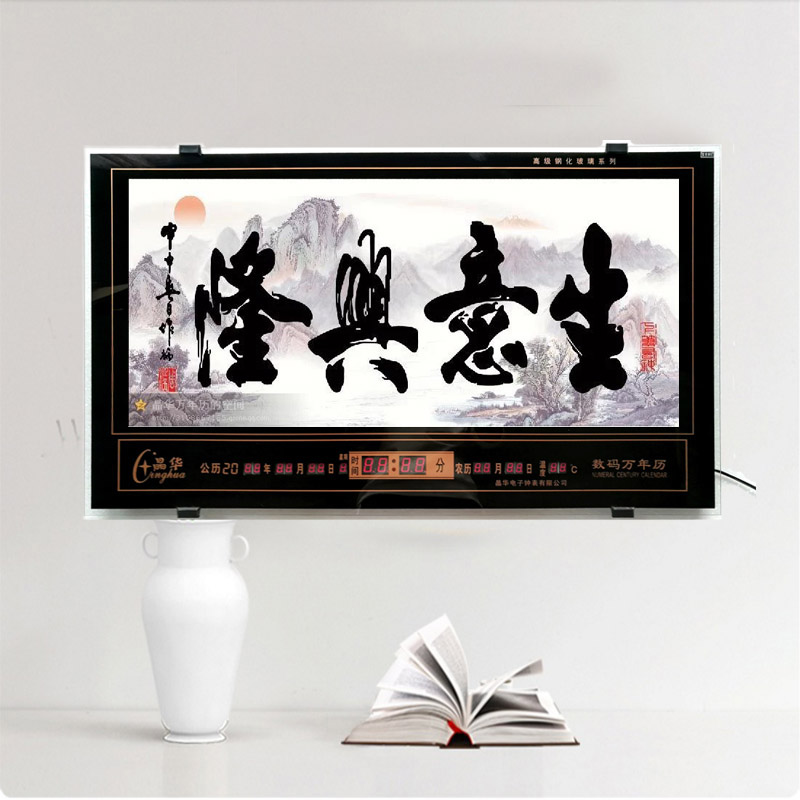 新房客廳裝飾日歷掛鐘,家和風景萬年歷,超薄七彩燈光更漂亮