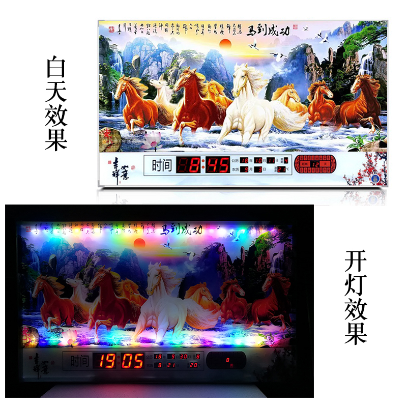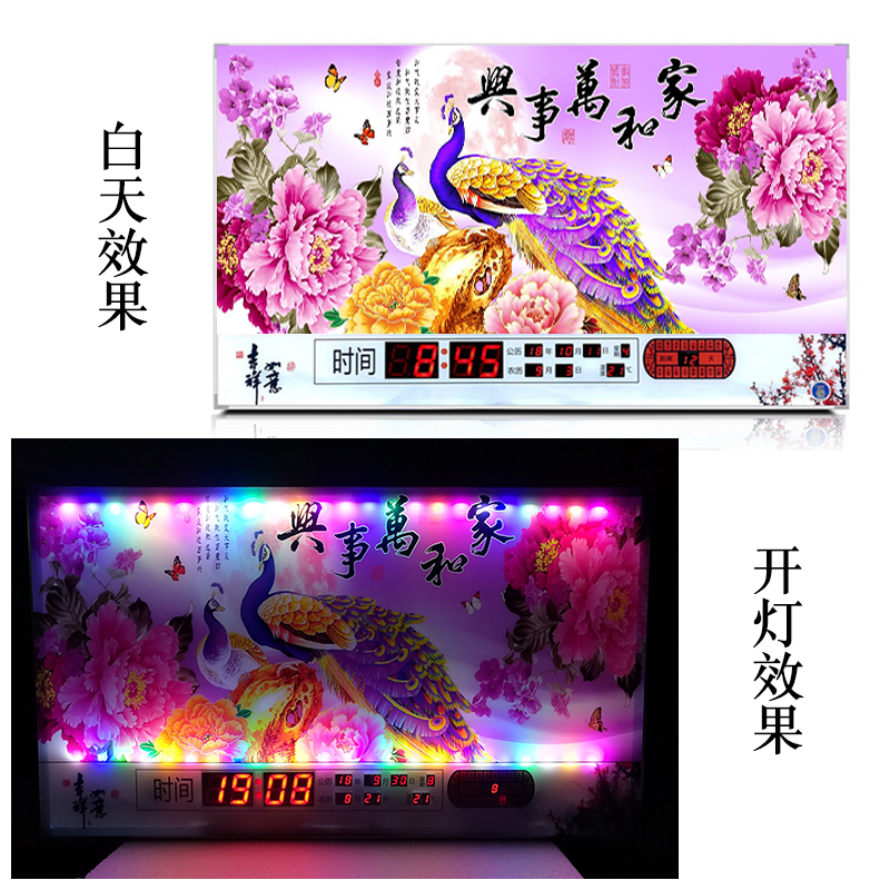 新房客廳裝飾日歷掛鐘,家和風(fēng)景萬(wàn)年歷,超薄七彩燈光更漂亮