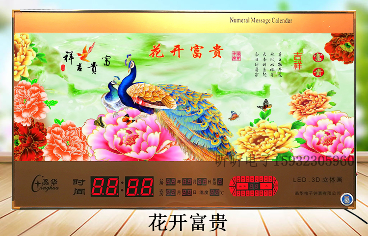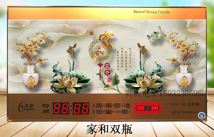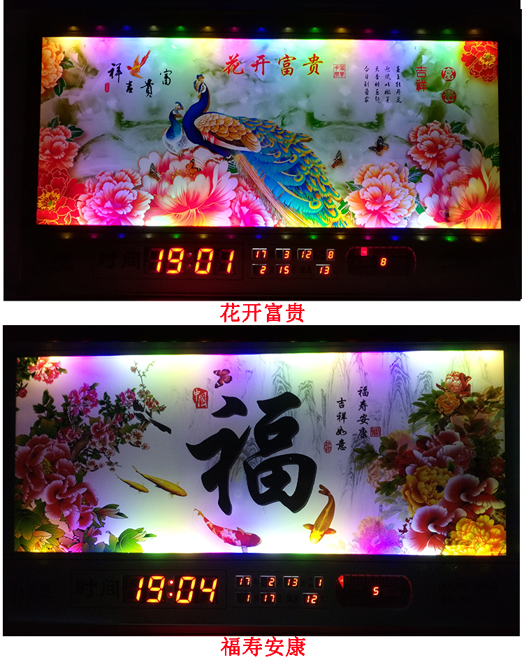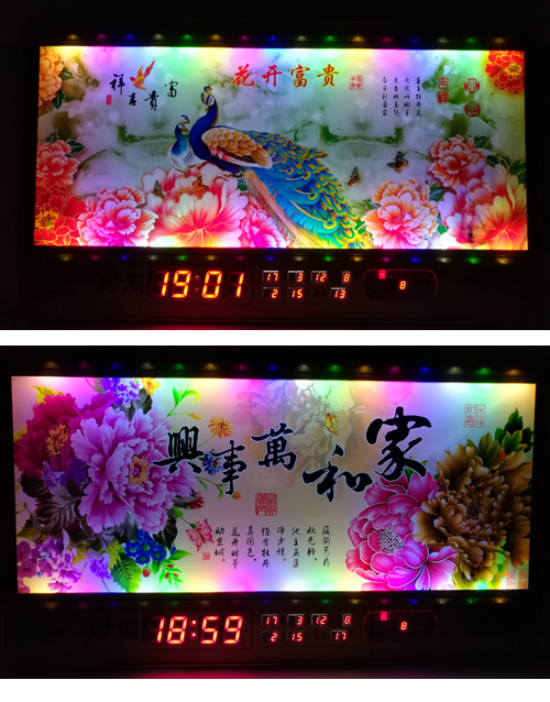 新房客廳裝飾日歷掛鐘,家和風景萬年歷,超薄七彩燈光更漂亮