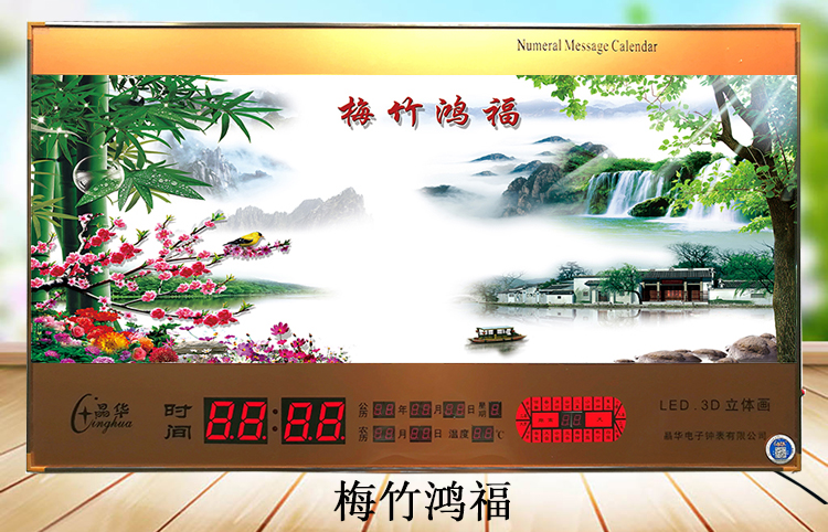 新房客廳裝飾日歷掛鐘,家和風(fēng)景萬年歷,超薄七彩燈光更漂亮